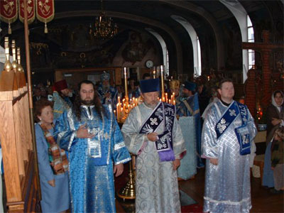 Ильей Горским. На аналое - икона Божией Матери "Споручница