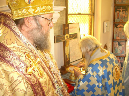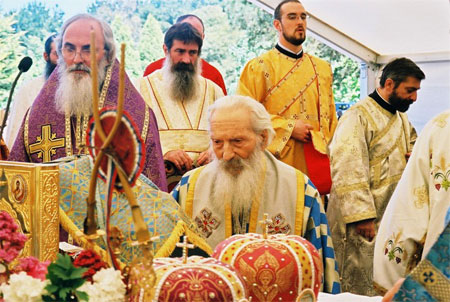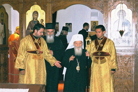 Патриарх Павел в сербском монастыре в Мельбурне. Иподиаконствуют