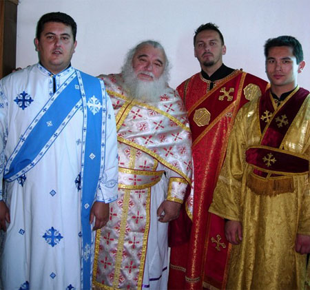диакон Милич Ракич, иерей Драголюб, диакон Вадим Ган и чтец Александр