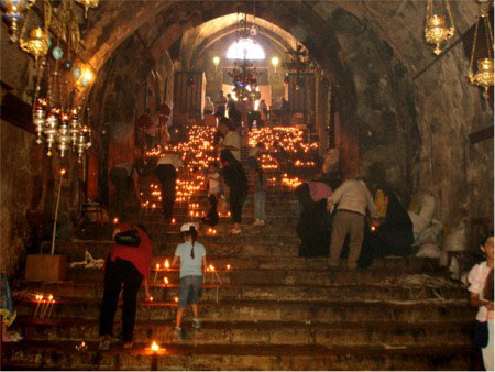 в храм в Гефсимании, где находится гробница Божией Матери.