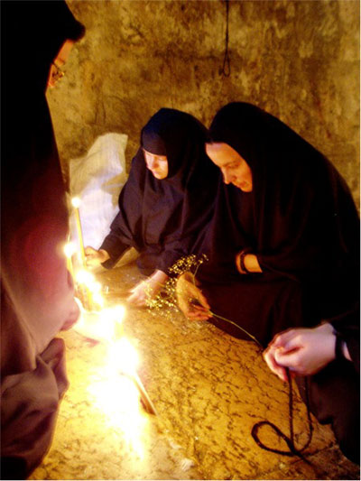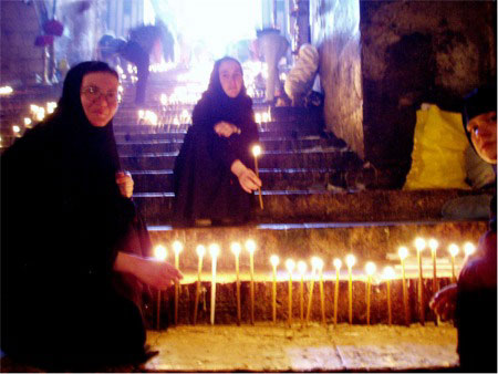 Сестры гефсиманские приходят помолиться и поставить свечи к Гробнице