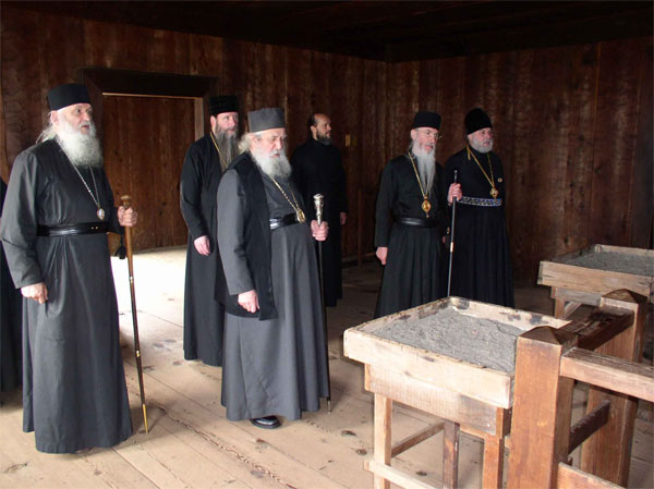 Архиепископ Кирилл, Епископ Михаил и Епископ Александр у часовни
