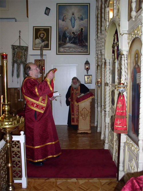Виталий Сабельник возглашает мирную ектенью в Бурлингейме, а за