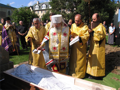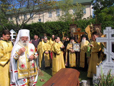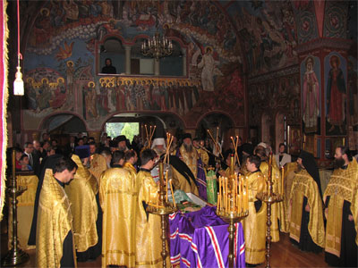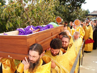 подняли гроб с телом почившего Владыки и обнесли его вокруг храма