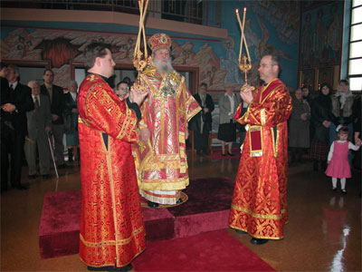 На малом входе Высокопреосвященнейший Владыка возложил на отца Иакова