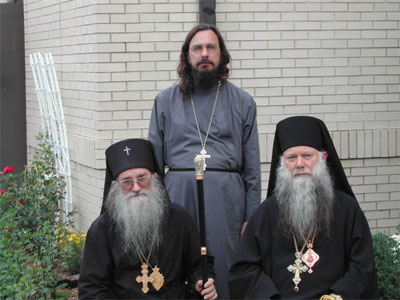 Митрополит Амфилохий, а рядом с ним сидят Епископы Петр и Лонгин.