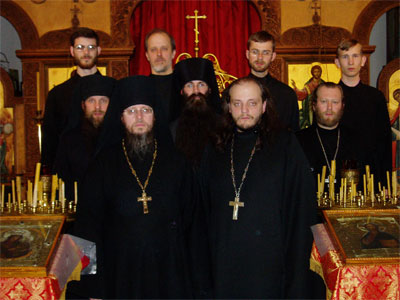 направо: иеромонах Роман (Красовский), регент монастырского хора;