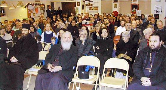 «Косово распято на кресте» Вечером 2 февраля в переполненном до отказа приходском зале собора Святого Иоанна Предтечи в Вашингтоне прошла встреча с иерархом Сербской Православной Церкви преосвященным Артемием, епископом Рашка-Призренским, который рассказал о современном положении Православной Церкви в Косово и Метохии. Владыку сопровождали секретарь иеромонах Симеон и игумен Василий, наместник монастыря Сопочани. Накануне своего выступления владыка молился за Божественной Литургией в соборе св. Иоанна Предтечи. В конце службы он приветствовал молящихся, преподал каждому архипастырское благословение и каждому вручил на память иконку св. Саввы.
