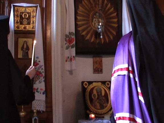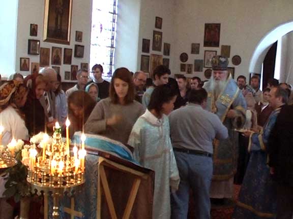 Вечером на монастырском кладбище, у могилы Преосвященнейшего архиепископа Серафима (Дулгова, † 2003) Владыка Михаил служил с собравшимися священниками панихиду по своим предшественникам на Женевской и Западно-Европейской кафедре - Преосвященнейшим архиепископам Серафиме и Антонии (Бартошевиче, † 1993), очередная годовщина со дня кончины которого исполнялась на следующий день, 19 сентября / 2 октября. Затем Преосвященный Михаил выходил на чтение Акафиста Божией Матери, которое, по монастырской традиции, с особой торжественностью совершается после воскресной вечерни.