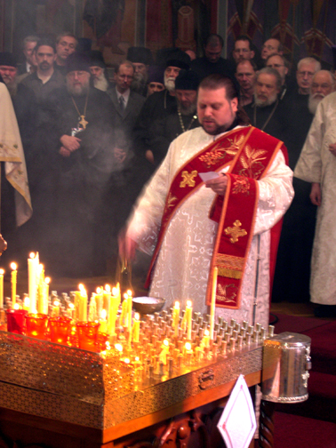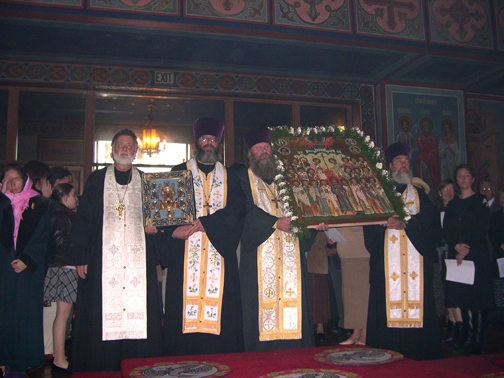 В тот же день вечером было совершено всенощное бдение, которое возглавил Первоиерарх Русской Зарубежной Церкви Высокопреосвященнейший митрополит Лавр в сослужении Высокопреосвященнейшего митрополита Амфилохия и всех прибывших на Собор иерархов и духовенства. Лития совершалась с крестным ходом вокруг кафедрального собора с Коренно-Курской иконой Божией Матери и двумя новыми иконами, специально написанными к открытию Собора – свв. Жен-Мироносиц, освященной на Гробе Господнем, и Святых Отцев Семи Вселенских Соборов, на которой изображены священноисповедник Патриарх Тихон, новосвященномученики Петр и Кирилл и святитель Шанхайский и Сан-Францисский Иоанн.