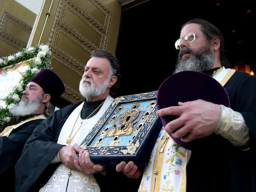 В четыре часа дня в кафедральном соборе иконы Божией Матери «Всех Скорбящих Радосте» была торжественно встречена Одигитрия русского зарубежья Коренно-Курская икона. Архиепископ Сиднейский и Австралийско-Новозеландский Иларион внес чудотворный образ Богоматери в кафедральный собор при всенародном пении тропаря: «Яко неподимую стену».