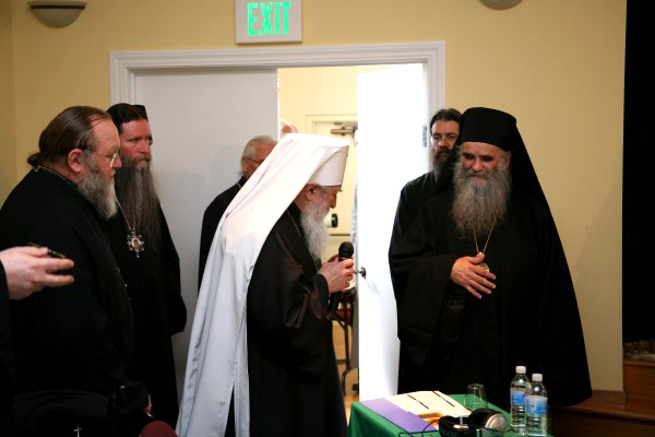 «Мы собрались, чтобы обсудить положение в РПЦЗ и принять решение о ее будущем, сказал в начале своего выступления Преосвященнейший архиепископ Марк. Мы часть единой Русской Православной Церкви и никогда не мыслили отделяться от нее и порабощенного народа». Докладчик сказал далее, что РПЦЗ во все годы своего существования старалась, как могла, оказывать помощь Русской Церкви. Старалась помочь и Катакомбной Церкви, рукоположив для ее окормления епископа Лазаря (Журбенко). Архиепископ Марк отметил, что РПЦЗ не хотела создавать в пределах России параллельную иерерахию, но, к сожалению, со временем потеряла ориентиры. Докладчик признал, что хиротония во епископа архимандрита Валентина (Русанцова) в Суздале была ошибкой и результатом слепой любви к России. Со временем Архиерейский Собор РПЦЗ осознал, что этот шаг нанес Русской Церкви тяжелую рану, которая и по сей день дает себя знать. Несколько позже епископы РПЦЗ приняли группу священников из Сибири, которая была притесняема, но и в этом случае не отдавая себе ясного отчета о положении вещей. В числе перешедших в РПЦЗ бывших священнослужителей РПЦ МП было немало недостойных людей. «Сербская Церковь предупреждала нас о пагубности этого пути и говорила, что непримиримая позиция РПЦЗ не без изъянов. В 1990 годах приснопамятный архиепископ Западно-Американский и Сан-Францисский Антоний убеждал нас обращать внимание на положительные перемены в России, но мы, к сожалению, его тогда не услышали». В эти годы, сказал далее владыка Марк, в устах многих священнослужителей РПЦ МП стала звучать критика «сергианства», экуменизма и недоумения по поводу откладывания прославления новомучеников и исповедников Российских. Архиерейский Собор РПЦ МП 2000 г. внес в жизнь Церкви ряд чрезвычайно важных перемен, которые архиереи РПЦЗ не могли игнорировать. В 2003 г. Россию посетила небольшая делегация из трех епископов. В мае 2004 г. делегация во главе с Высокопреосвященнейшим Митрополитом Лавром поехала в Россию на официальную встречу со Святейшим Патриархом и членами Священного Синода РПЦ МП. По поводу продолжающегося уже три года переговорного процесса Преосвященнейший архиепископ Марк подчеркнул, что нельзя ожидать, что на нем будет достигнут по всем пунктам полное и согласное единомыслие. Если мы готовы покориться воле Божией, мы добьемся единства, отметил Владыка.