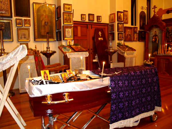 21 июля, в день праздника Казанской иконы Божией Матери, архиепископ Сиднейский и Австралийско-Новозеландский Иларион, Первый Заместитель Председателя Архиерейского Синода, совершил отпевание новопреставленной игумении Евпраксии, настоятельницы Богородице-Казанской женской обители в Сиднее, в сослужении протоиереев Иоанна Стукача, Михаила Константинова, Никиты Чемодакова, Михаила Ли, Михаила Бойкова и Георгия Лапардина, иеромонаха Иоакима, священников Бориса Игнатьевского и Владимира Цуканова при протодиаконе Василии Хадарине. Среди пришедших помолиться о упокоении новопреставленной была игумения Анна (Карыпова), начавшая свой монашеский путь в этой святой обители. По окончании отпевания архиепископ Иларион, духовенство и молящиеся направились на кладбище « Rookwood », где Матушку похоронили на участке, принадлежащем монастырю.