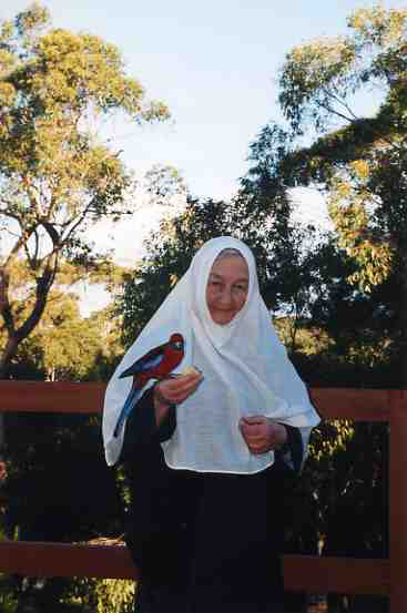 Матушка с настоятелем Покровской церкви в Кабраматта. Матушка с группой сестер обители. Светлая Седмица 2001 г. Матушка на досуге.