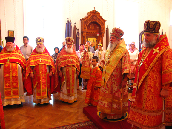 В праздник Рождества Иоанна Предтечи, в день архиерейской хиротонии своего викария, Высокопреосвященнейший Митрополит Лавр возглавил Божественную литургию в Знаменском кафедральном соборе при Архиерейском Синоде в г. Нью-Йорке в сослужении епископа Манхеттенского Гавриила и 33 клириков. По окончании Божественной литургии и благодарственного молебна Его Высокопреосвященство поздравил епископа Гавриила с десятилетием архипастырского служения и пожелал Его Преосвященству помощи Божией в несении креста архиерейского служения. Затем последовал прием, на котором было произнесено много теплых приветствий и преподнесены памятные подарки. Ниже предлагаем вниманию читателей снимки этого торжества.