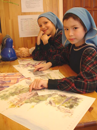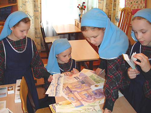 Настоящим праздником стало для всех нас, а особенно – для наших маленьких воспитанниц получение долгожданного подарка со Святой Земли. Сестры Гефсиманской обители, где пребывают мощи святых преподобномучениц Великой княгини Елизаветы и инокини Варвары, прислали в дар приюту большую святыню – крест с частицами земли с тех мест, что освящены жизнью Спасителя, а еще копии своих рисунков и множество других сувениров: икон, закладок, календарей и фотографий.