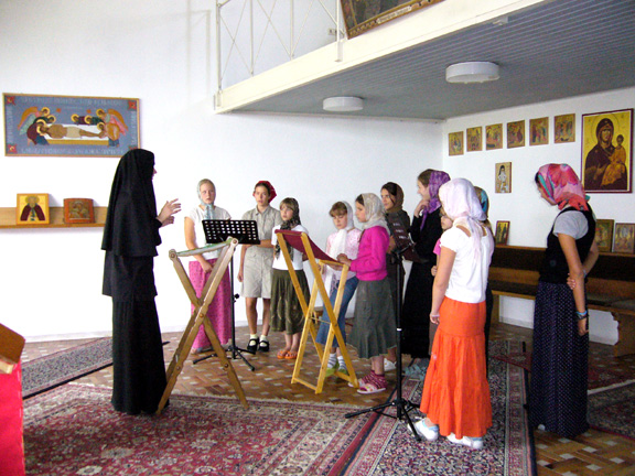 Лагерь открылся молебном. В праздник преп. Серафима Саровского в обители служил иеромонах Евфимий (Логвинов) из обители преп. Иова Почаевского в Мюнхене. Особую радость всем доставил приезд в обитель правящего архиерея нашей Епархии – Преосвященнейшего архиепископа Марка, который отслужил всенощную и Божественную литургию на св. пророка Илью, в сослужении о. Димитрия Калачева из Билефельда. Дети имели возможность участвовать в ежедневных богослужениях, исповедоваться и причащаться святых Таин Христовых, а кроме этого расширять круг своих друзей. В первой половине дня проводились занятия по церковно-славянскому языку, иконописи, литургическому пению, а также 30 мин. было посвящено чтению Евангелия на свежем воздухе с объяснением его. После обеда девочки купались на озере, совершили паломничество в монастырь преп. Иова Почаевского. К сожалению, ввиду ненастной погоды, уход за лошадьми и катание верхом, пришлось отменить. Оставшееся до вечерни время, использовалось для рисования и рукоделия. После вечерней трапезы все охотно смотрели видео-фильмы о монастырях и других православных святынях. Условия жизни в монашеской среде, по установленной программе, способствовали поддержанию в лагере подтянутого настроения. В пятницу, 4 августа, после акафиста перед мироточивым образом Пресвятой Богородицы «Донской», все разъехались. Было отрадно слышать пожелания детей: снова встретиться следующим летом в Бухендорфе. Марфо-Мариинский лагерь предполагается каждым летом проводить в обители. Учитывая пожелания родителей, сообщаем, что даты открытия лагеря в следующем году, будут зараннее опубликованы.
