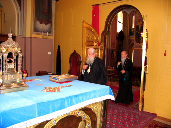 святыни соборного храма. Приветствуя Его Высокопреосвященство, архимандрит