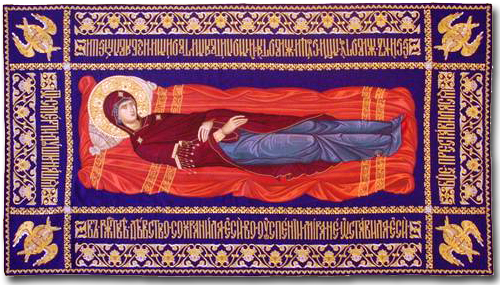 В память об этих событиях в Иерусалиме с давних времен установился обычай повторять сей крестный ход с плащаницей Богородицы, которая представляет собой двустороннюю икону в серебрянном окладе. Весь год она хранится на подворье Гефсимании, так называемой Малой Гефсимании прямо напротив храма Воскресения Христова. И лишь на Успенский период чудотворная Плащаница переходит в специально приготовленную для нее сень у Гробницы Богородицы. Верующие прикладываются к ней проходя под сенью на коленях. С 25 августа по 5 сентября лестница храма Успения, состоящая из 48 ступеней, вся бывает заставлена свечами. Зрелище удивительное. Отдание праздника - это одновременно и прощание с Плащаницей. Вновь со всего Иерусалима во множестве собираются монашествующие, которым полагается возглавлять шествие. Здесь можно увидеть представительниц всех монастырей Святой Земли: и гречанок, и румынок, и русских. Все объединены любовью к Пресвятой Богородице. Крестный ход продолжается больше часа. На христианской улице верующих благословляет Блаженнейший Патриарх Иерусалимский Феофил с клиром. Шествие заканчивается на площади храма Воскресения Христова под громкий святогробский пасхальный звон.