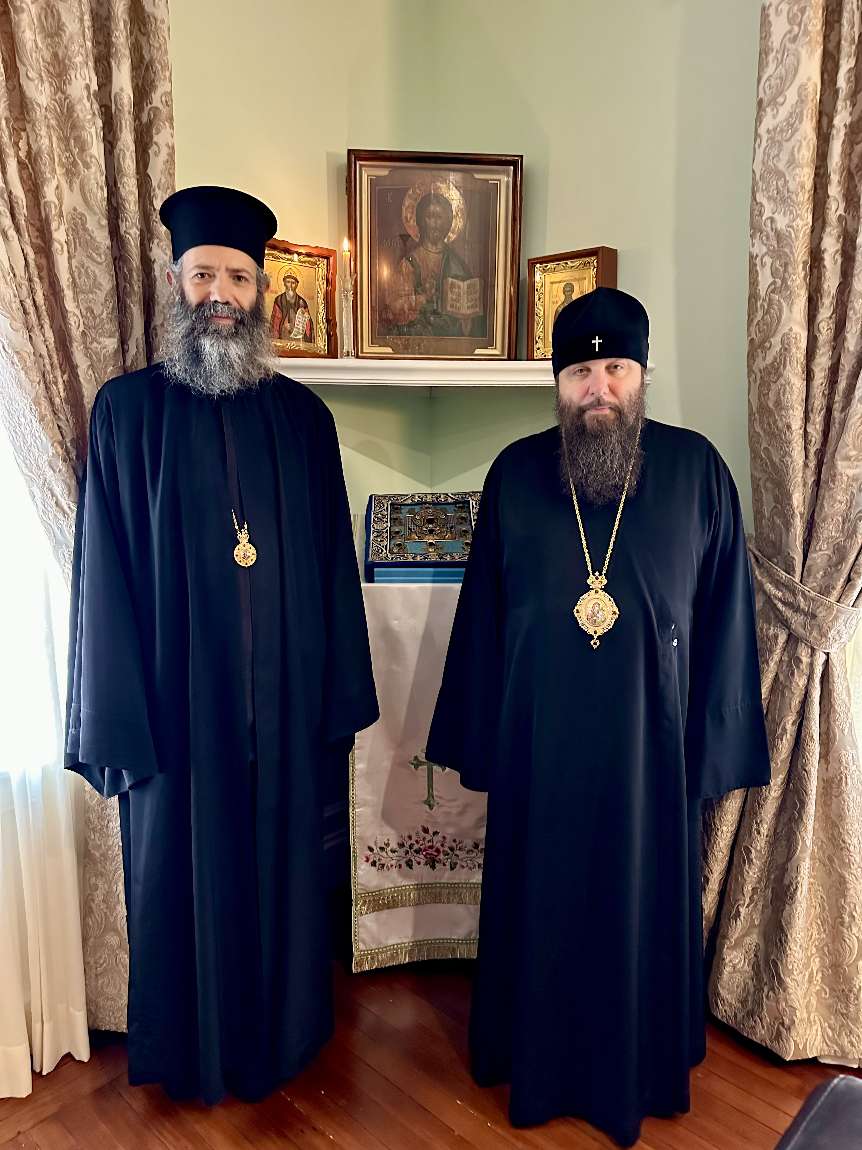По окончании богослужения Высокопреосвященнейший митрополит Николай приветствовал Преосвященного Климента с завершающейся Четыредесятницей, пожелав мирной Страстной седмицы и радостной встречи Христа Воскресшего. Затем Его Высокопреосвященство пригласил епископа Климента в свои покои, где был предложен завтрак. За постной трапезой архипастыри обсудили насущные вопросы церковной жизни в США и межправославных отношений. В завершение встречи иерархи обменялись памятными дарами.
