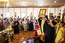 На следующее утро восемь архиереев отслужили Божественную Литургию, которую возглавил митрополит Тихон, проповедь произнес архиепископ Алексий.