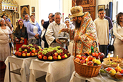 По окончании Литургии митрополит Николай традиционно освятил корзины с фруктами.