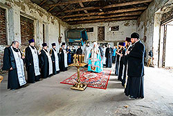 Перед началом панихиды Высокопреосвященный владыка Серафим рассказал собравшимся о решении восстановить разрушенный Михайло-Архангельский храм и призвал помолиться об упокоении приснопамятного протоиерея Серафима, его отца — убиенного протоиерея Алексия и всех усопших, кто жил в этом селе, трудился и молился в этом храме.