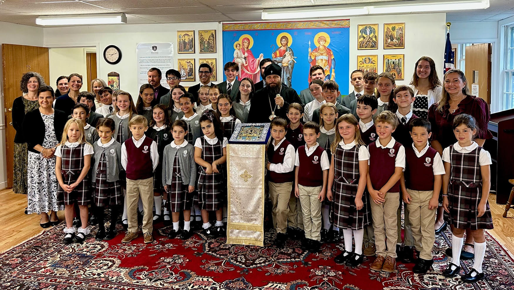 On Thursday, September 25, on the Afterfeast of the Nativity of the Most Holy Theotokos, Metropolitan Nicholas, accompanying the Miracle-working Kursk-Root Icon of the Mother of God, visited St George Classical Academy in Ipswich, MA. There His Eminence met with the director, Juliana Schneider, students and pupils, toured all the facilities, and learned about the life of the school. On the same day, His Eminence visited Mt Auburn Cemetery in Cambridge, MA, where he served a requiem at the grave of the late benefactor of the Synod of Bishops and the Athonite St Elias Skete, Sergei Semenenko, who in the late 1950s generously donated the Synodal Residence in New York City to the Russian Orthodox Church Abroad.