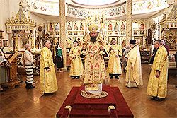 The next morning, Metropolitan Nicholas once again celebrated the Liturgy on the feast of the Optina Elders. Before the beginning of the Liturgy, Metropolitan Nicholas ordained reader Viktor Ovchinnikov as a subdeacon. After the Great Entrance, Fr Jonah Evans was ordained to the priesthood. In his sermon, the Primate spoke about the Heavenly patrons of the skete of the Holy Optina Elders, which abides at the Church of Venerable Mary: