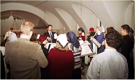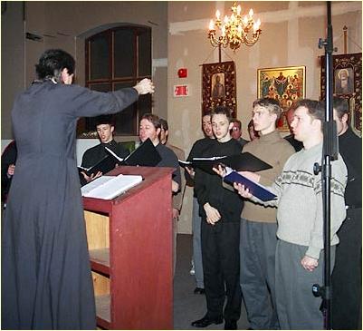 Andrei Evgenievich Burbelo conducts the choir at liturgy.