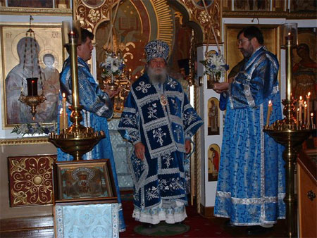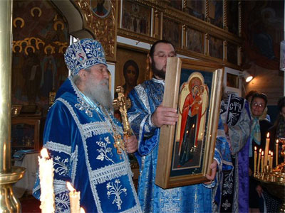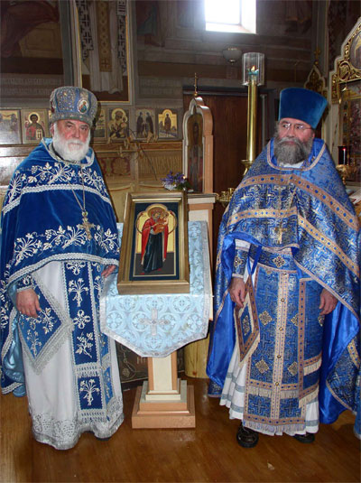 Ильей Горским. На аналое - икона Божией Матери "Споручница