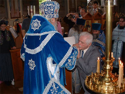 Высокопреосвященнейший Митрополит Лавр награждает протоиерея Илью