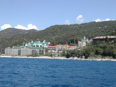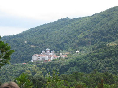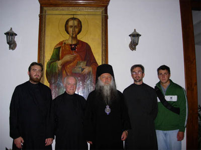 Епископ Петр с паломниками в русском Пантелеимоновском монастыре.