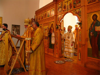 В начале Божественной литургии сидят (слева направо): Архиепископ