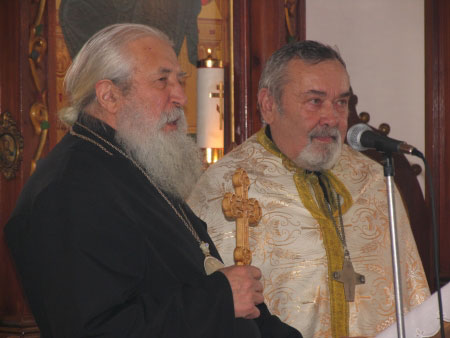 Его Высокопреосвященство приветствует молящихся в одном из храмов Пряшевской Руси.