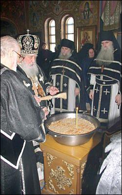 On Saturday, at Matins, the end of the First Week of the Great Fast is clearly felt, and with the Church we cry out: "Let us keep the Sabbath today, O ye who have rested from yesterday's labors." On this day the Liturgy of St. John Chrysostom is served, and following monastic custom all the denizens of the Monastery, having made their confession the night before, receive communion of the Holy Mysteries of Christ. After the dismissal, Vladyka Metropolitan congratulates everyone on receiving Communion and on successfully completing the First Week of the Fast, calling on them to give thanks to God for His having made it possible for them to serve all the services of the past week without abridgment. At meals on that day a little lenten "consolation" is provided for all who have fasted strictly during these days. The First Week of the Great Fast ends on