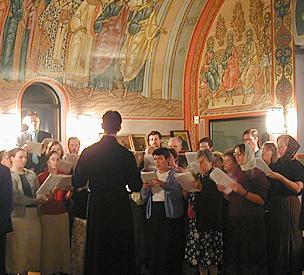 sang antiphonally on two klirosy (in Church Slavonic and English),