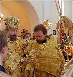 That same day, during the minor entrance, Priest Stelios Liabotis was awarded the nabedrennik. In his sermon, His Grace Bishop Gabriel said that the days preceding Great Lent prepare us for the journey towards healing. And healing is needed for us all. Vladyka also noted that the feast day is a second Pascha of sorts for the parish, and called upon all the parishioners to try to attend service on the day itself. In conclusion, Vladyka Gabriel congratulated Deacon Vasily with his proceeding in the path of his father. After a service of supplication to St. Xenia, all were invited by the sisterhood to a trapeza luncheon.