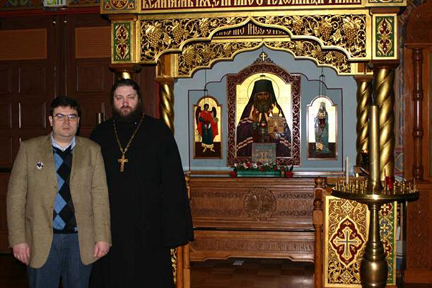 С о. Ярославом БеликовымИ еще одно приятное знакомство – с протоиереем Ярославом Беликовым. Батюшка служит в кафедральном соборе во имя иконы Божией Матери «Всех скорбящих Радость» Сан-Францисской и Западно-Американской епархии Русской Православной Церкви Заграницей, где покоятся мощи святителя Иоанна. Именно в этом храме 7 мая 2006 года состоится открытие IV Всезарубежного Собора.