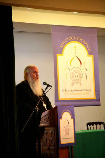 «Мы собрались, чтобы обсудить положение в РПЦЗ и принять решение о ее будущем, сказал в начале своего выступления Преосвященнейший архиепископ Марк. Мы часть единой Русской Православной Церкви и никогда не мыслили отделяться от нее и порабощенного народа». Докладчик сказал далее, что РПЦЗ во все годы своего существования старалась, как могла, оказывать помощь Русской Церкви. Старалась помочь и Катакомбной Церкви, рукоположив для ее окормления епископа Лазаря (Журбенко). Архиепископ Марк отметил, что РПЦЗ не хотела создавать в пределах России параллельную иерерахию, но, к сожалению, со временем потеряла ориентиры. Докладчик признал, что хиротония во епископа архимандрита Валентина (Русанцова) в Суздале была ошибкой и результатом слепой любви к России. Со временем Архиерейский Собор РПЦЗ осознал, что этот шаг нанес Русской Церкви тяжелую рану, которая и по сей день дает себя знать. Несколько позже епископы РПЦЗ приняли группу священников из Сибири, которая была притесняема, но и в этом случае не отдавая себе ясного отчета о положении вещей. В числе перешедших в РПЦЗ бывших священнослужителей РПЦ МП было немало недостойных людей. «Сербская Церковь предупреждала нас о пагубности этого пути и говорила, что непримиримая позиция РПЦЗ не без изъянов. В 1990 годах приснопамятный архиепископ Западно-Американский и Сан-Францисский Антоний убеждал нас обращать внимание на положительные перемены в России, но мы, к сожалению, его тогда не услышали». В эти годы, сказал далее владыка Марк, в устах многих священнослужителей РПЦ МП стала звучать критика «сергианства», экуменизма и недоумения по поводу откладывания прославления новомучеников и исповедников Российских. Архиерейский Собор РПЦ МП 2000 г. внес в жизнь Церкви ряд чрезвычайно важных перемен, которые архиереи РПЦЗ не могли игнорировать. В 2003 г. Россию посетила небольшая делегация из трех епископов. В мае 2004 г. делегация во главе с Высокопреосвященнейшим Митрополитом Лавром поехала в Россию на официальную встречу со Святейшим Патриархом и членами Священного Синода РПЦ МП. По поводу продолжающегося уже три года переговорного процесса Преосвященнейший архиепископ Марк подчеркнул, что нельзя ожидать, что на нем будет достигнут по всем пунктам полное и согласное единомыслие. Если мы готовы покориться воле Божией, мы добьемся единства, отметил Владыка.