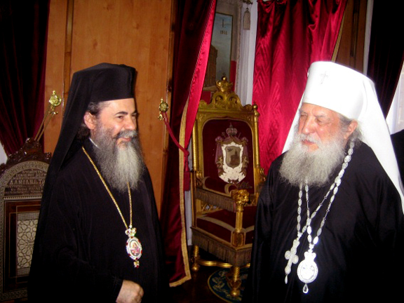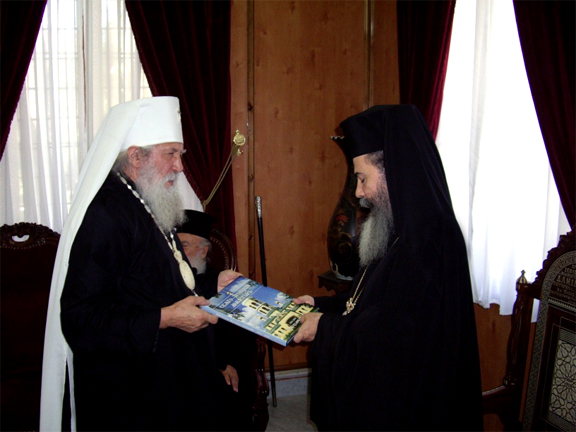 Патриархом Феофилом в здании Иерусалимской Патриархии. Во встрече приняли