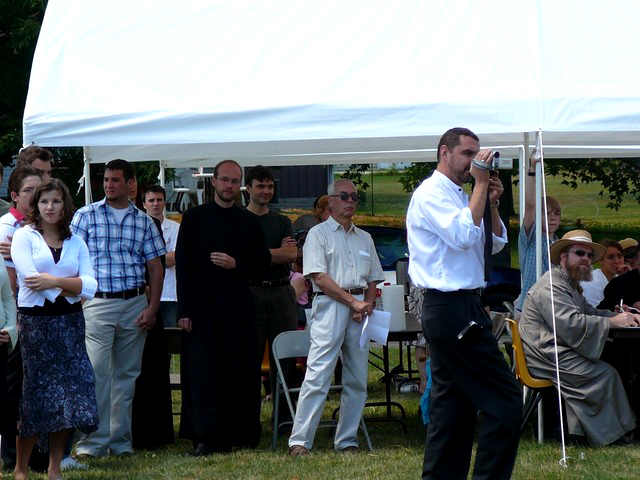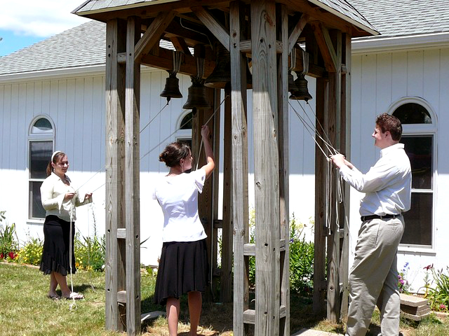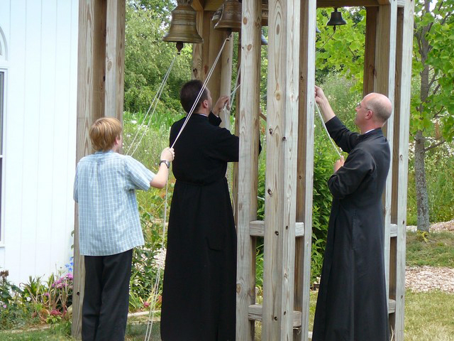 В субботу 30 июня участники выставки собрались во Владимирском храме на Божественной литургии в день святителя Иоанна. После Божественной литургии был предложен легкий постный завтрак , а сразу после этого началось первое занятие по колокольному звону под руководством протодиакона Вадима Гана из Покровского кафедрального собора в Дес - Плейнс, Иллинойс. Будучи семинаристом, о. Вадим звонил в колокола в Свято-Троицком монастыре, и он поделился своим опытом с участниками, которые попробовали свои силы под его руководством.