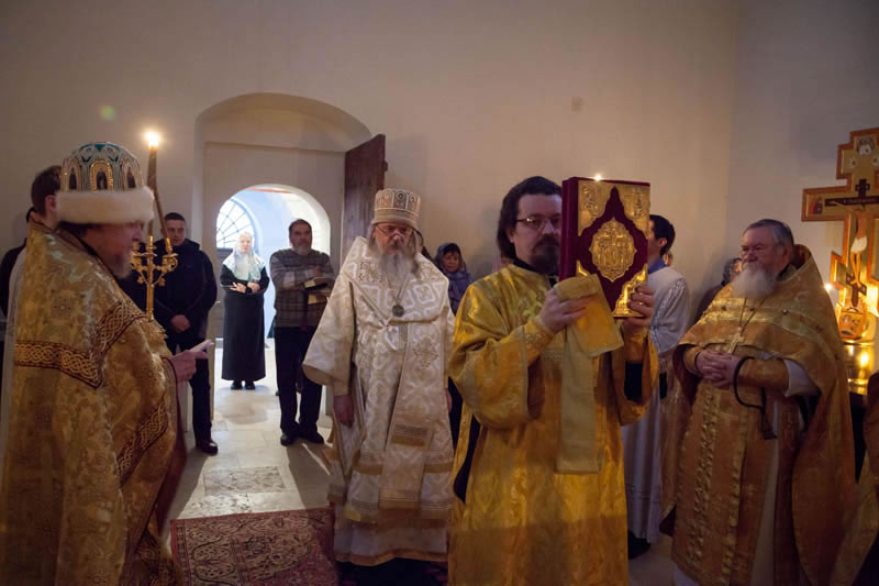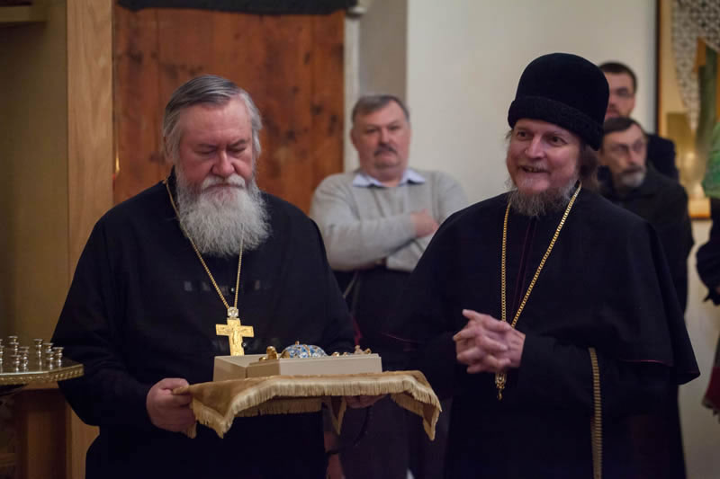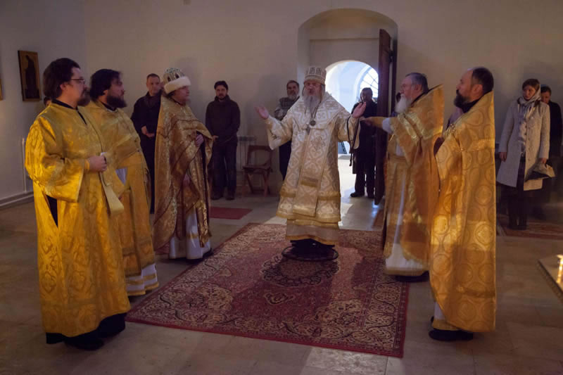 По завершении богослужения, приветствуя владыку, настоятель храма архимандрит Дионисий сказал, что нынешняя Божественная литургия, совершенная архиереем древним богослужебным чином, стоит для единоверческой Покровской общины в ряду знаменательных для них церковных событий начала года. 12 января митрополитом Крутицким и Коломенским Ювеналием в Успенском Патриаршем соборе Московского Кремля в день памяти святителя Макария, митрополита Московского и всея Руси, была совершена Божественная литургия по древнерусскому богослужебному чину в ознаменование столетия Первого Всероссийского единоверческого съезда. В рамках XXI Международных Рождественских образовательных чтений прошла конференция «Старый обряд в жизни Русской Православной Церкви», к которой был проявлен большой интерес в церковных кругах. И, наконец, со 2 по 5 февраля состоялся Освященный Архиерейский Собор, в постановлении которого было уделено внимание деятельности единоверных приходов. В память совместных молитв архимандрит Дионисий преподнес владыке архиерейское кадило.