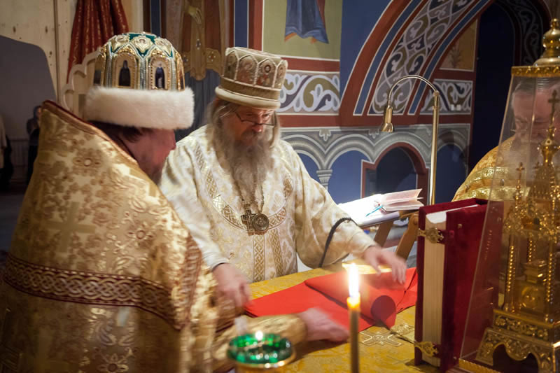 После запричастного стиха архимандрит Дионисий огласил Послание Освященного Архиерейского Собора клиру, монашествующим и мирянам Русской Православной Церкви
