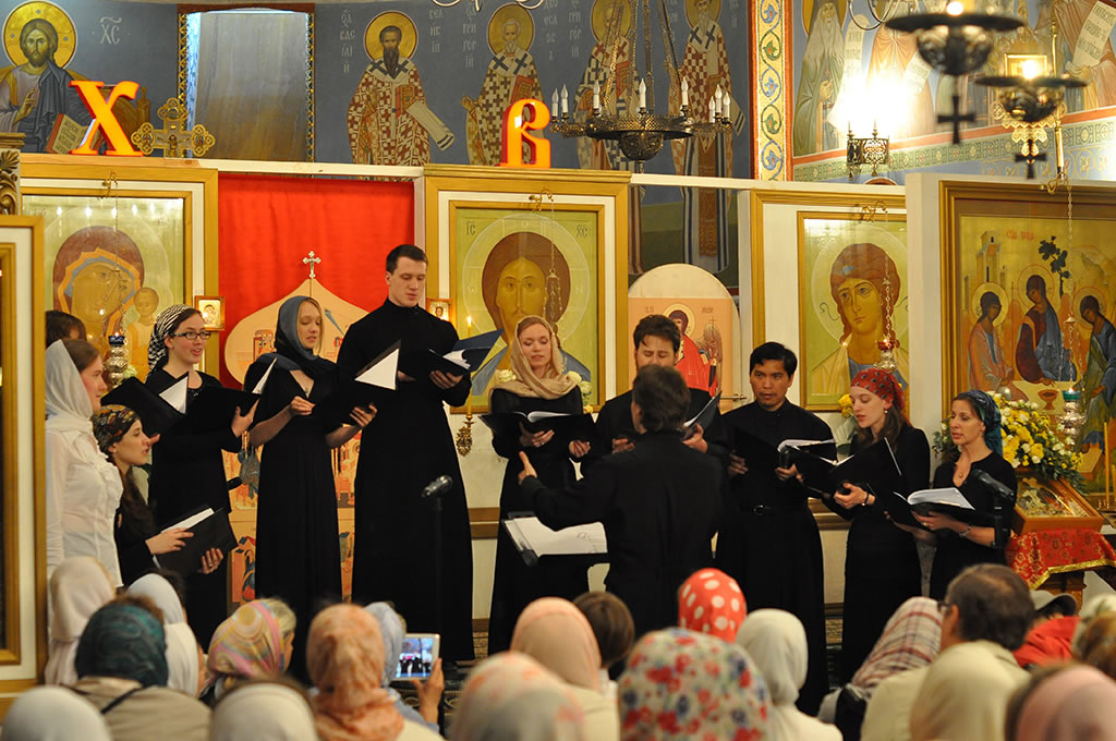 Выступление хора православной молодежи Русской Зарубежной Церкви в храме Покрова Пресвятой Богородицы в Ясеневе