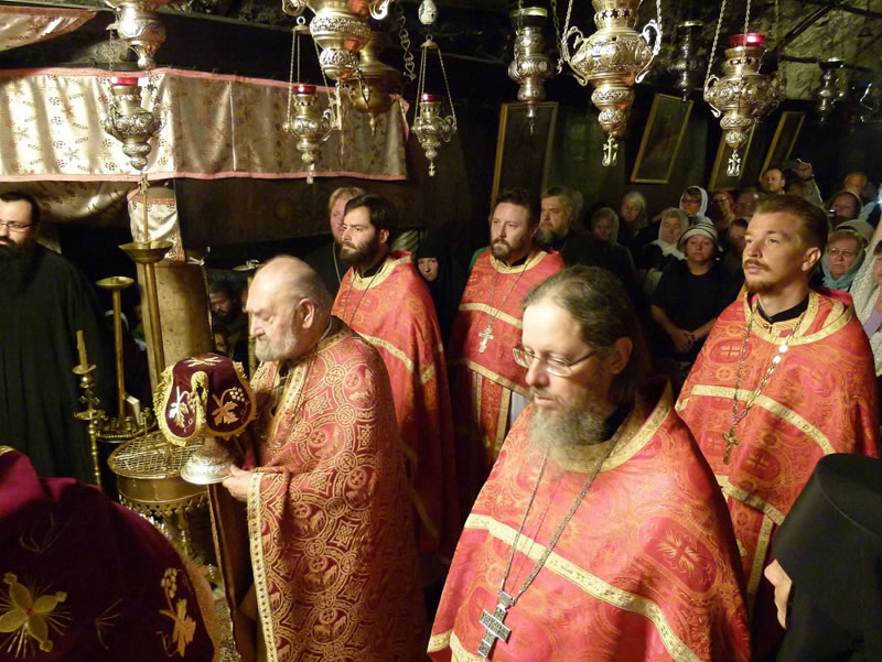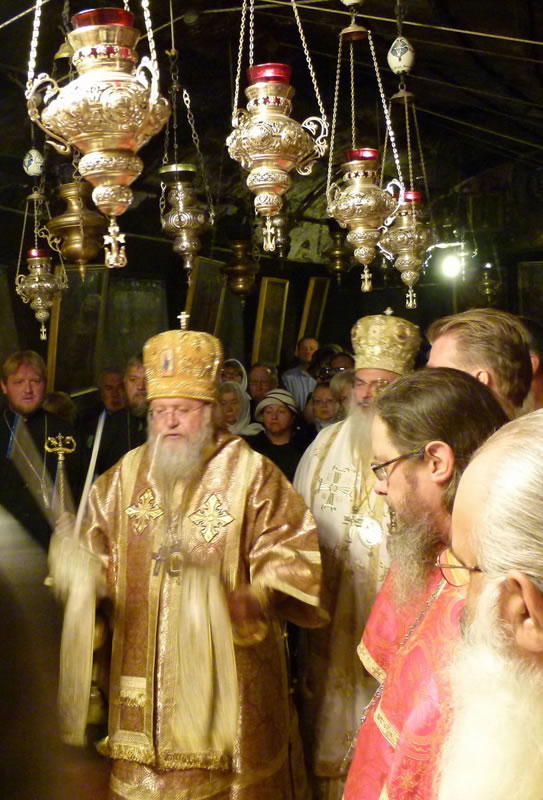 В воскресенье, 6 октября, Высокопреосвященнейший митрополит Восточно-Американский и Нью-Йоркский Иларион, Первоиерарх Русской Зарубежной Церкви, совершающий паломничество по святыням Святой Земли, совершил Божественную литургию в русском женском монастыре в Гефсимании, а накануне - Всенощное бдение в Горненском монастыре. В понедельник, 7 октября, Его Высокопреосвященство совершил Божественную литургию на месте Рождества Христова в Вифлееме. Здесь Его Высокопреосвященству сослужили архиепископ Иорданский Феофилакт, архимандрит Роман (Красовский), Начальник Духовной Миссии Русской Зарубежной Церкви в Иерусалиме, паломники в священном сане.