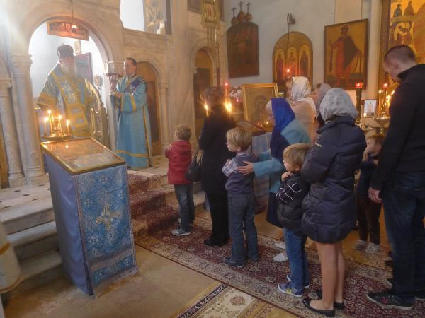 Среди этого культурного наследия особо выделяется русская православная церковь, украшенная иконами известного художника Карла Брюллова. В ней больше 120 лет проводятся православные богослужения. Воздвигнутая для утешения всех скорбящих и уповающих на чудо по молитвам Пресвятой Богородицы, многим больным она была единственной отрадой и утешением. Поэтому храм играл чрезвычайную роль в духовном окормлении сотен русских людей, пребывающих в здешнем городе. Как и 120 лет назад, сегодня он также является духовным сердцем северной части Лазурного берега. Красной нитью в проповеди архиерея проходила мысль о том, что болезнь телесная тесно связана с грехом, омрачающим человеческую душу. Владыка Михаил призвал богомольцев внимательно следить за личной духовной жизнью и не допускать укоренения в своем сердце страстей и немощей, разрушающих всего человека.
