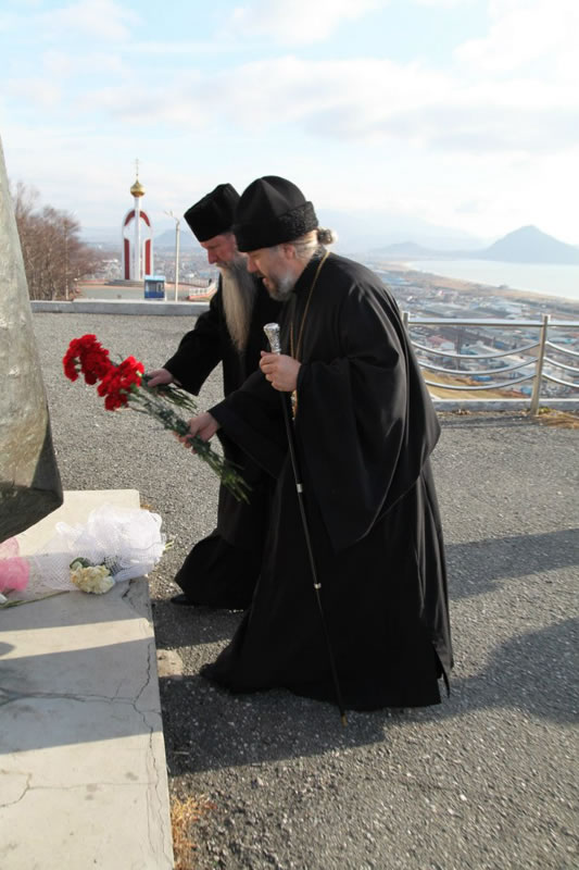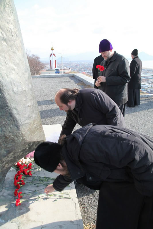 Перед началом вечернего богослужения, для представителей духовенства Русской Зарубежной Церкви, была проведена экскурсия по г. Находка. Гости посетили видовую площадку на м. Астафьева, храм в честь Рождества Христова г. Находка и возложили цветы к мемориалу «Скорбящая мать».