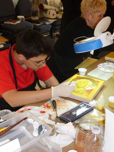 Участников обучали технике переноса изображения икон на грунтованную доску, гравировать и выделять линии, приготавливать и смешивать краски на яичной эмульсии, применять технику золочения, технику осветления образа из темных полутонов и другим тонкостям и мастерству иконописной живописи.
