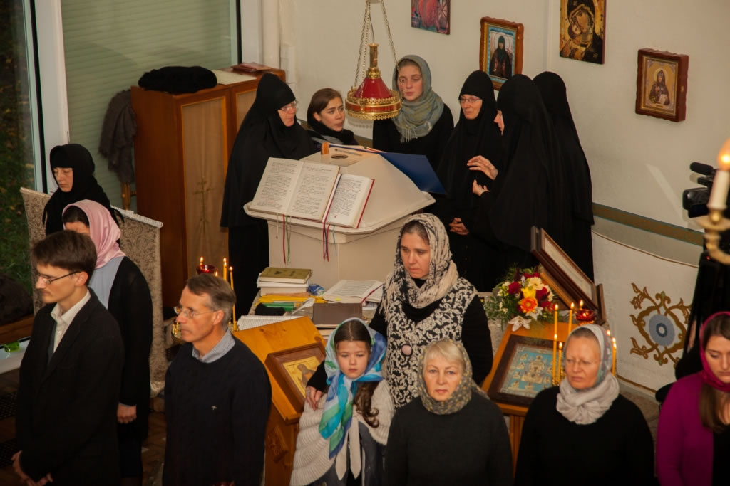 И вот наступил долгожданный праздник. День этот начался с Божественной литургии, которую возглавил Высокопреосвященнейший Марк, архиепископ Берлинский и Германский. Его Высокопреосвященству сослужили епископ Штутгартский Агапит, викарий Германской епархии; игумен Гавриил настоятель мужского монастыря «Крупа» в Далматии (Сербская Православная Церковь) ; иеромонах Авраамий (Диркс), клирик обители; протоиерей Сергий Маношкин, протоиерей Илья Лимбергер, протоиерей Николай Забелич; протоиерей Виктор Вдовиченко, иерей Андрей Сикоев, иерей Валерий Михеев, иерей Андрей Березовский, иерей Анатолий Шефер и иерей Виктор Мешко, при протодиаконе Георгии Кобро и иеродиакон Корнилии (Литвиченко).